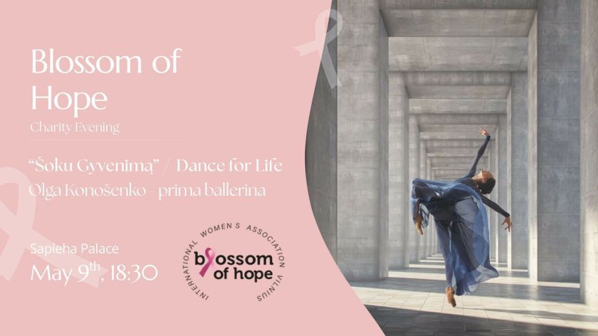 Kilnios labdaros iniciatyvos „Sužydėjusi viltis“ organizacinio komiteto narės intensyviai ruošiasi kasmetiniam renginiui, skirtam krūties vėžio prevencijai Lietuvoje. Vilniaus Tarptautinės Moterų Asociacijos (IWAV) ir pirmosios ponios Dianos Nausėdienės globojamas jau 17-asis iškilmingas vakaras vyks šių metų gegužės 9 d. Sapiegų rūmuose. Šių metų labdaros vakaro tema – „Šoku gyvenimą“.