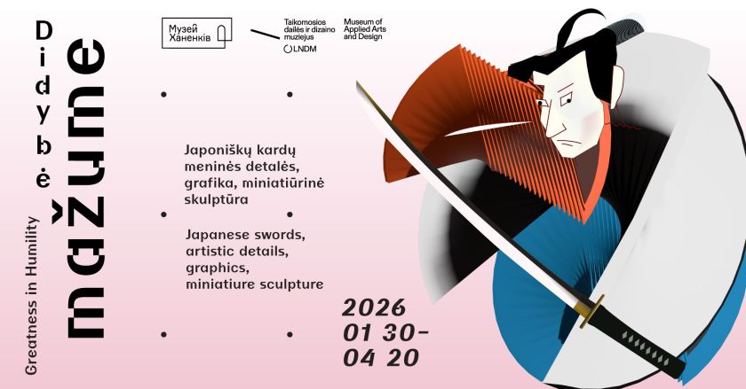 Sausio 30-ąją, penktadienį, 16 val. Lietuvos nacionalinio dailės muziejaus Taikomosios dailės ir dizaino muziejuje (Arsenalo g. 3A, Vilniuje) atidaroma paroda „Didybė mažume. Japoniškų kardų meninės detalės, grafika, miniatiūrinė skulptūra“. Joje lankytojai išvys, kaip miniatiūrinėse formose atsiskleidžia didingi senosios Japonijos kultūros socialiniai ir materialiniai sluoksniai.