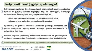 Gyventojai, apdrausti privalomuoju sveikatos draudimu, gali gauti planines medicinos paslaugas ne tik Lietuvoje, bet ir kitose Europos šalyse. Vienu atveju galima savarankiškai pasirinkti gydymo įstaigą užsienyje, susimokėti už paslaugas ir kreiptis į ligonių kasą dėl išlaidų kompensavimo, kitu – gydymą svetur organizuoja Lietuvos gydymo įstaiga.